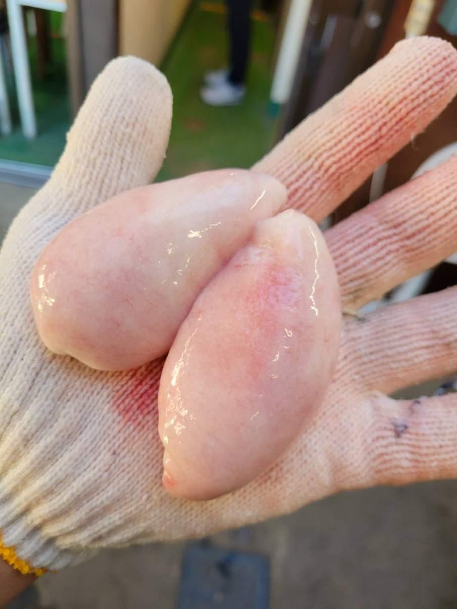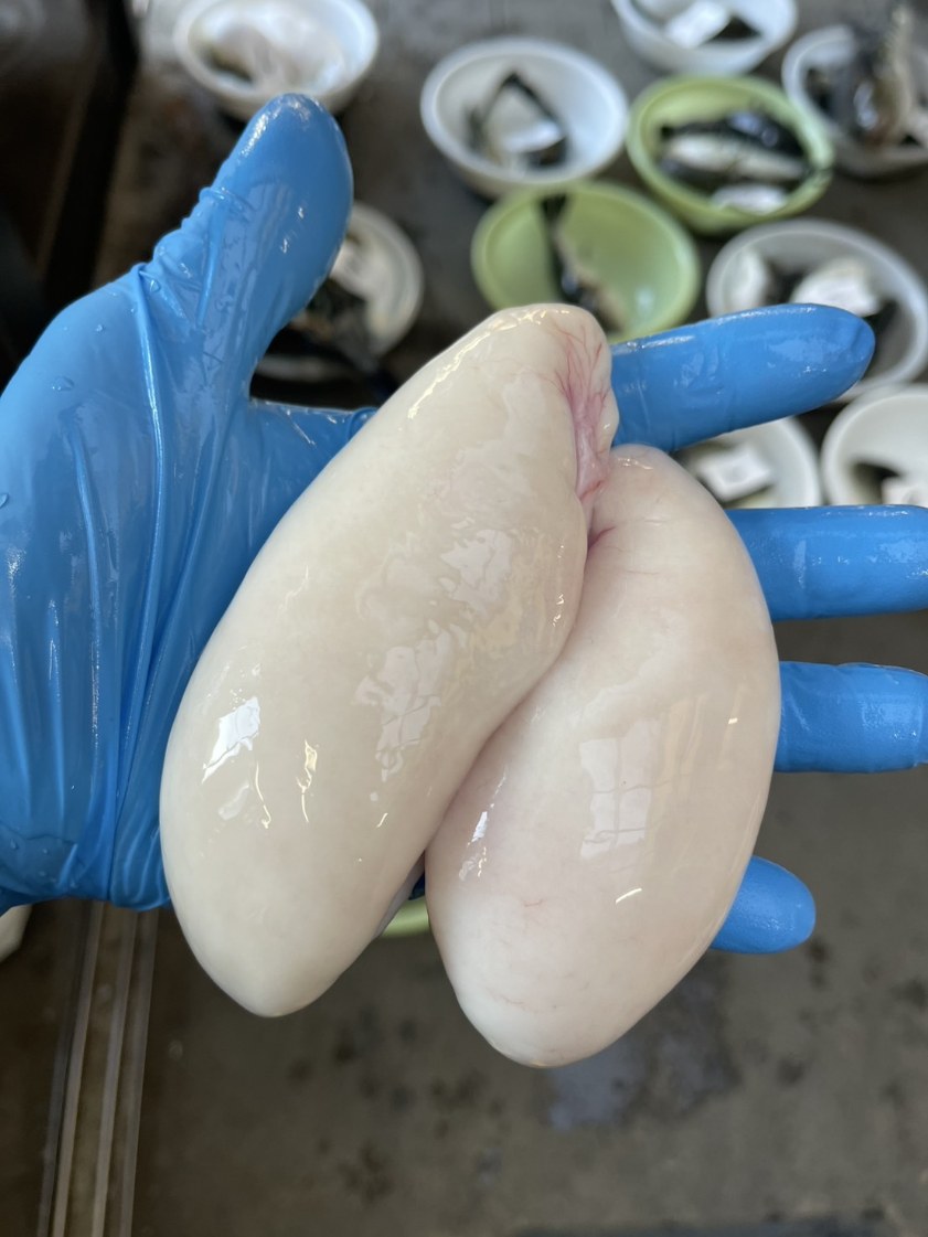 40cmぐらいのトラフグだと白子入ってるのもいますよー